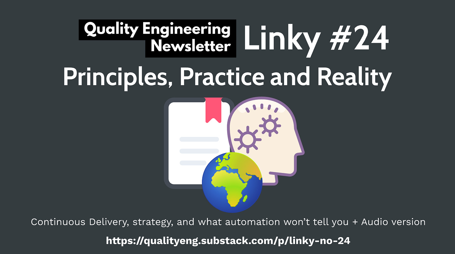 This week’s Linky is all about how teams define “good”, then build feedback loops to protect it. From Continuous Delivery principles, to quality strategy, to the messy reality of UI and human behaviour. Plus: I’m experimenting with an audio version of Linky, let me know if it’s useful.